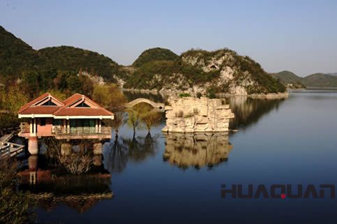 百花湖的特點(diǎn)是“山中水,水中山”,不知是山纏著水,還是水繞著山。湖的東南岸上,有一個(gè)叫“朱昌堡”的軍事要塞,周長(zhǎng)約2000米,有東、西兩門,明代軍隊(duì)曾經(jīng)駐扎于此。附近有三座石峰,險(xiǎn)峻挺拔,分別被稱作大將軍、二將軍和三將軍。
