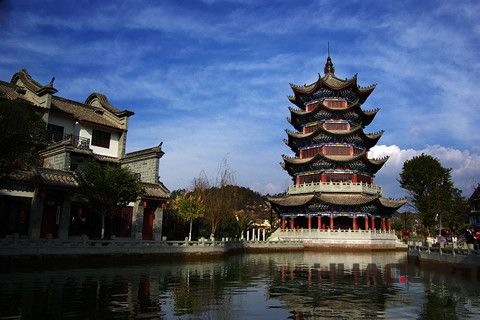 彝人古鎮(zhèn),位于楚雄市區(qū)西部,瀕臨龍川江,它是在宋代“德江城”遺址附近興建的一個集彝族民居展示、旅游為一體的文化名鎮(zhèn)。主要有望江樓、桃花溪、德運廣場、古戲臺、火把廣場、彝人部落、土司府等等景點。在這里,不僅能感受彝族風情、文化,還可以欣賞精彩的舞蹈,以及各種娛樂活動。其中,由彝人部落安排的“天天長街宴、夜夜火把節(jié)”活動,原始、粗獷、原生態(tài),特色鮮明,是古鎮(zhèn)為讓游客體驗彝家風情而獻上的一道文化大餐!